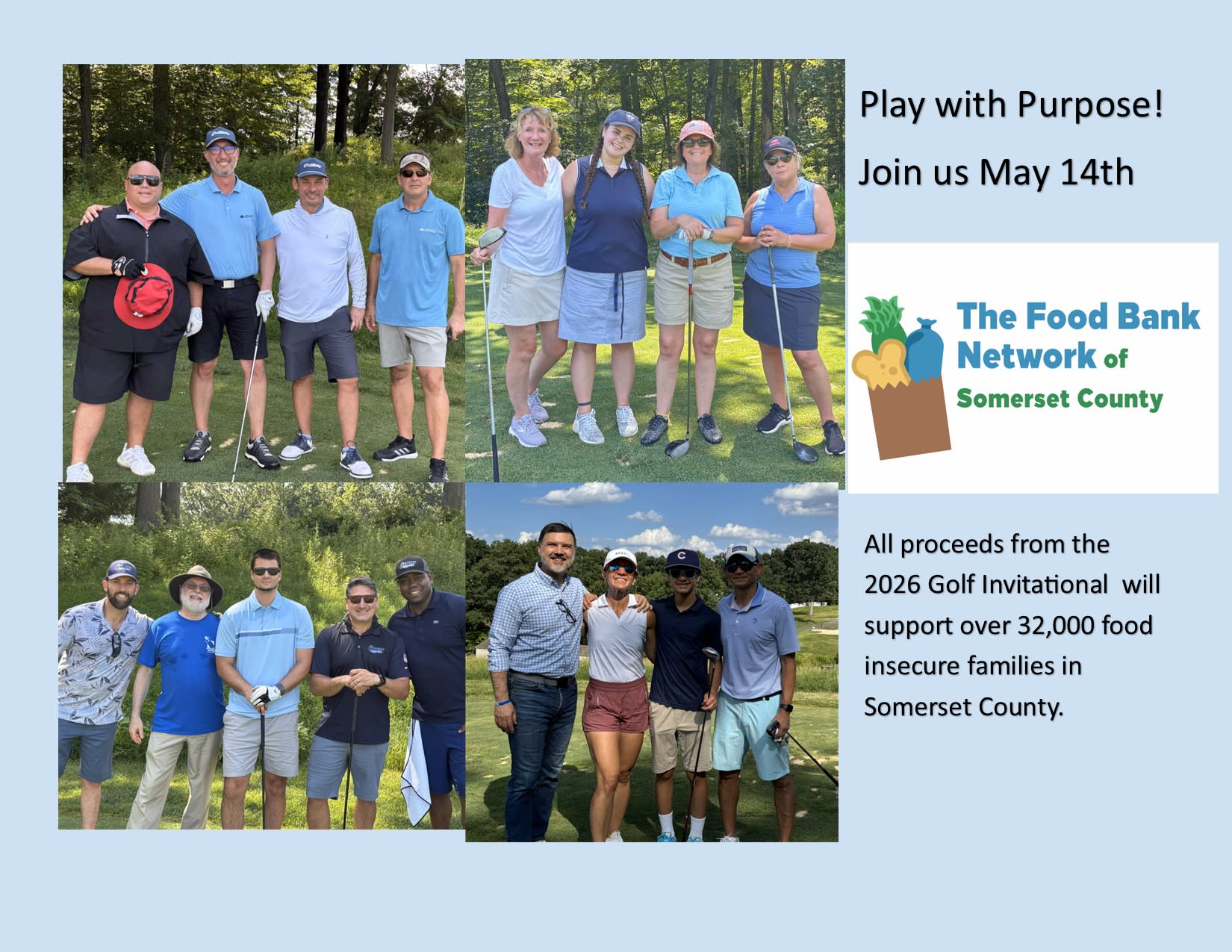 Join us for a day on the course, while raising significant funds for the Food Bank Network of Somerset County 2026 programs and services