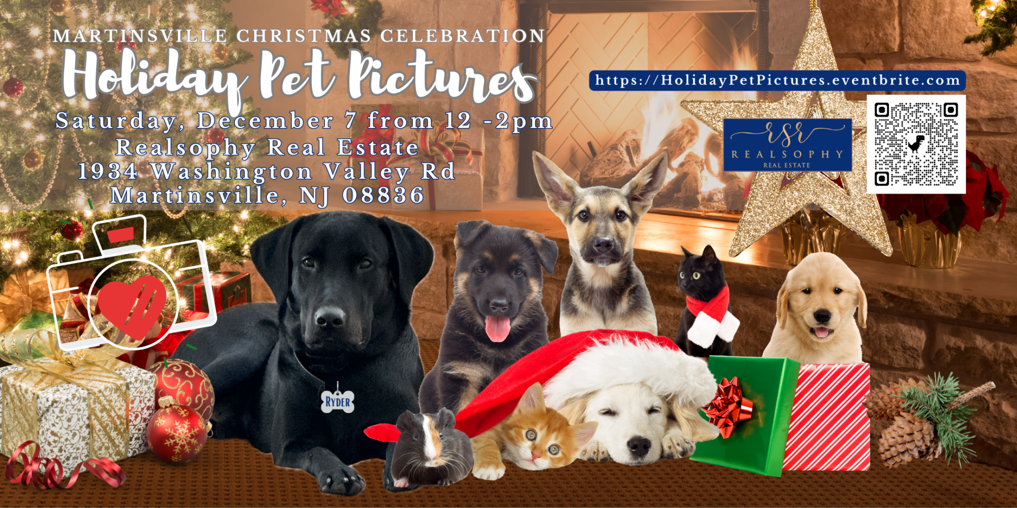 🎄 Holiday Pet Pictures 🎄 Celebrate the holiday season with us at Realsophy Real Estate by bringing your furry friends to our Holiday Pet Pictures event! Join us for a fun-filled day as we capture festive memories with our beloved pets. 📸 Event Highlights: A photo booth where your pets can pose for adorable holiday photos. Holiday-themed backdrops to make the pictures even more special. A cozy, festive atmosphere with plenty of cheer! 📅 Date & Time: Saturday, December 7, 2024 from 12:00 PM - 2:00 PM 📍 Location: Realsophy Real Estate, 1934 Washington Valley Rd, Martinsville, NJ 08836 Bring your pet, dress them up in their holiday best, and capture a seasonal memory you’ll cherish