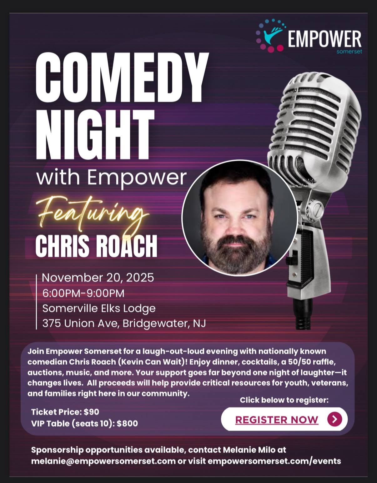 Join us for a night of laughter and impact at our 3rd Annual Comedy Night Fundraiser on Thursday, November 20, from 6–9 PM! Get ready to laugh-out-loud with nationally known comedian Chris Roach (Kevin Can Wait), while enjoying dinner, cocktails, music, auctions, and a 50/50 raffle. Your night of laughs will help change the lives of youth, veterans, and families in our community. Tickets are on sale now!