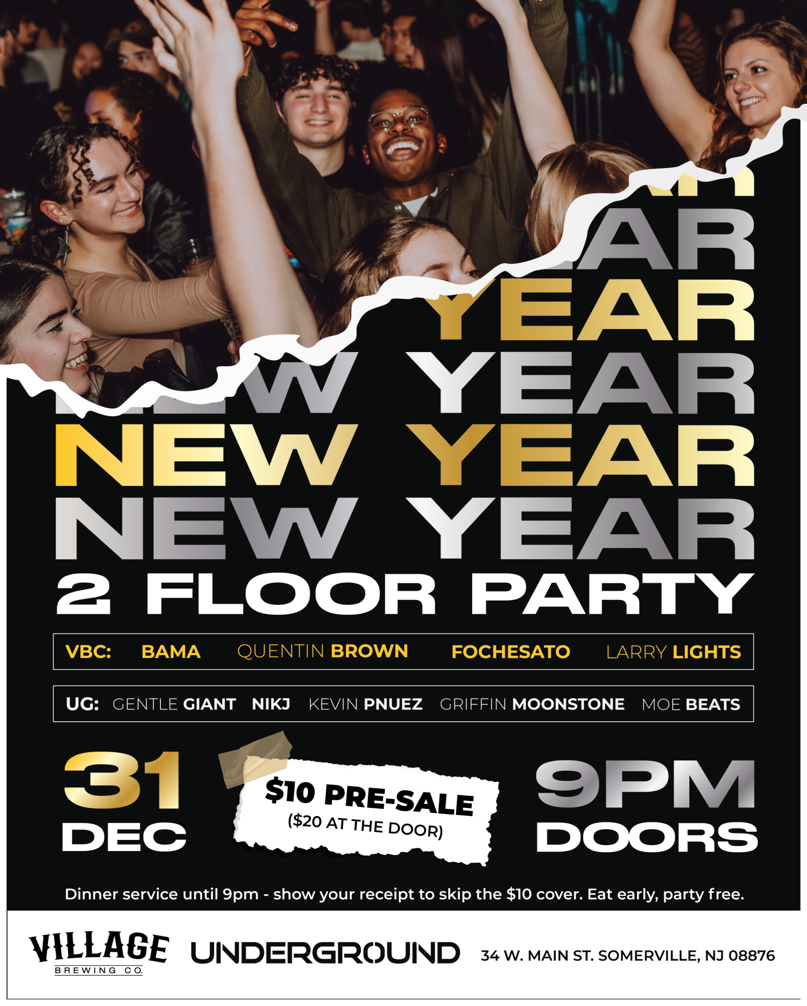 Wednesday, December 31 - Kick off the New Year right! Join us at @villagebrewingcompany & @undergroundvbc for a massive two-floor celebration featuring some of the best DJs in NJ!