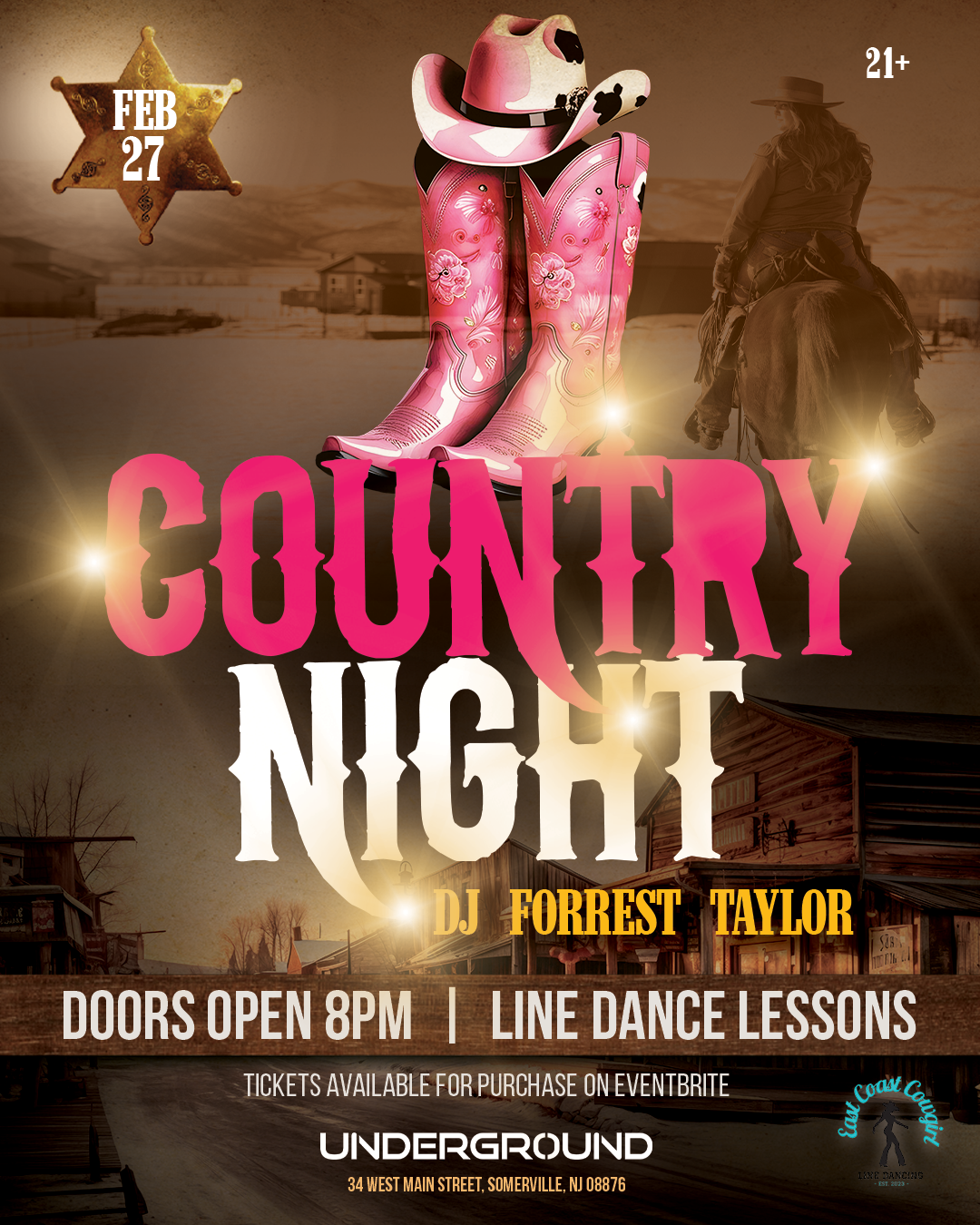 Dust off your cowboy hat and boots and come on down to the Underground for another party with country line dancing and country music all night!