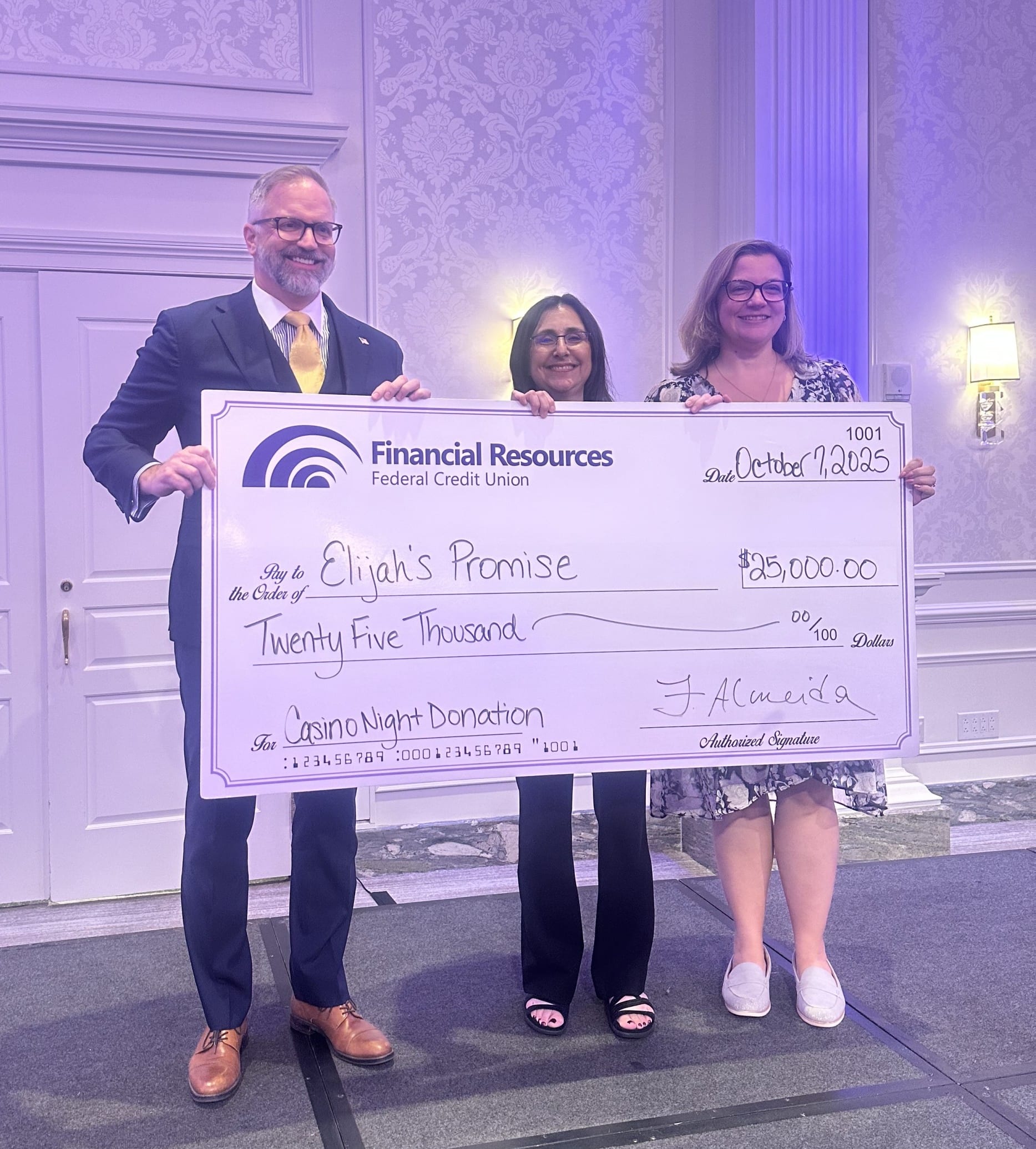 Branchburg, NJ — October 21, 2025 — Financial Resources Federal Credit Union (FRFCU) is proud to announce the resounding success of its 2025 FRFCU Foundation Casino Night, held at The Palace at Somerset Park. The event raised over $70,000 in support of several charitable organizations and featured as the main beneficiary, Elijah’s Promise, a Central New Jersey nonprofit dedicated to fighting hunger and transforming lives through the power of food.
