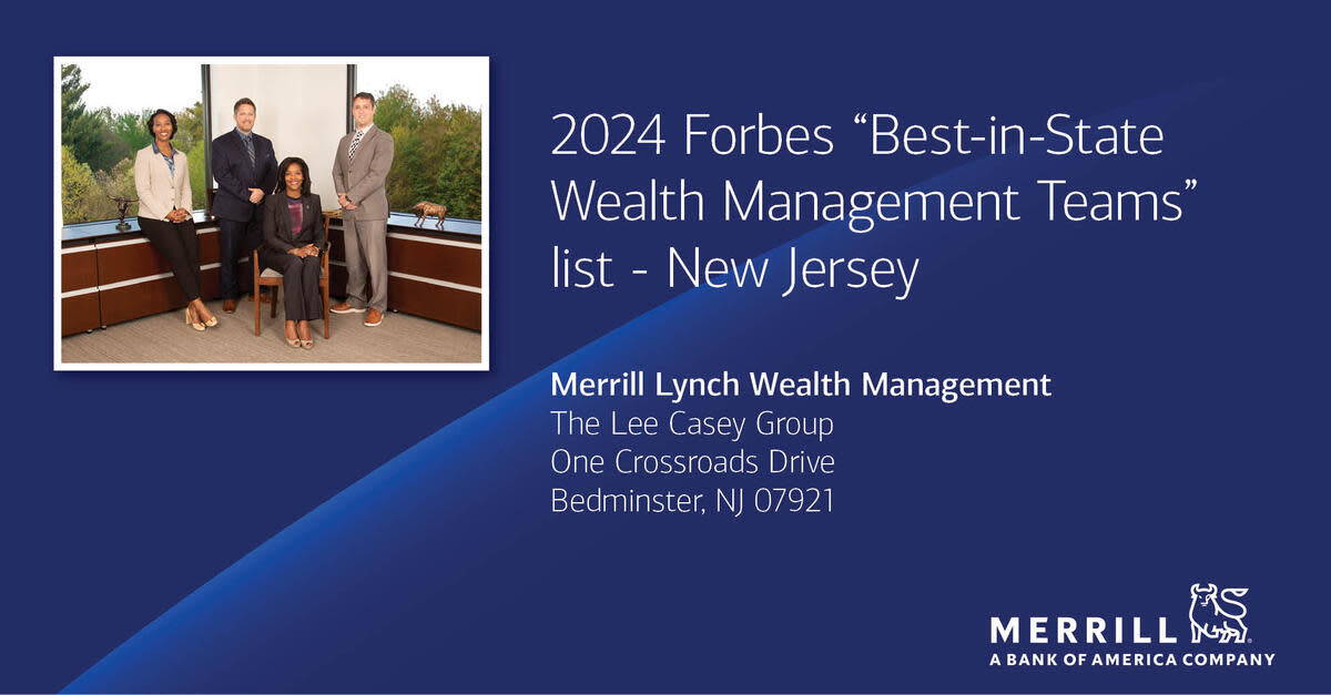 The Lee Casey Group, was recognized on the 2024 Forbes "Best-in-State Wealth Management Teams" list, published on January 9, 2024. Rankings based on data as of March 31, 2023.* Thank you for the recognition, Forbes.