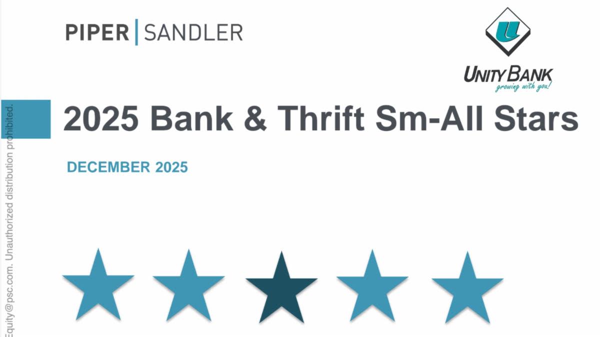 Unity Bancorp Named to Piper Sandler Sm-All Stars Class of 2025